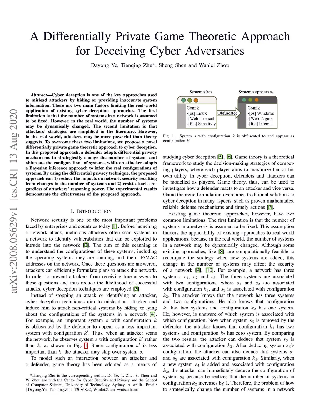 A Differentially Private Game Theoretic Approach for Deceiving Cyber