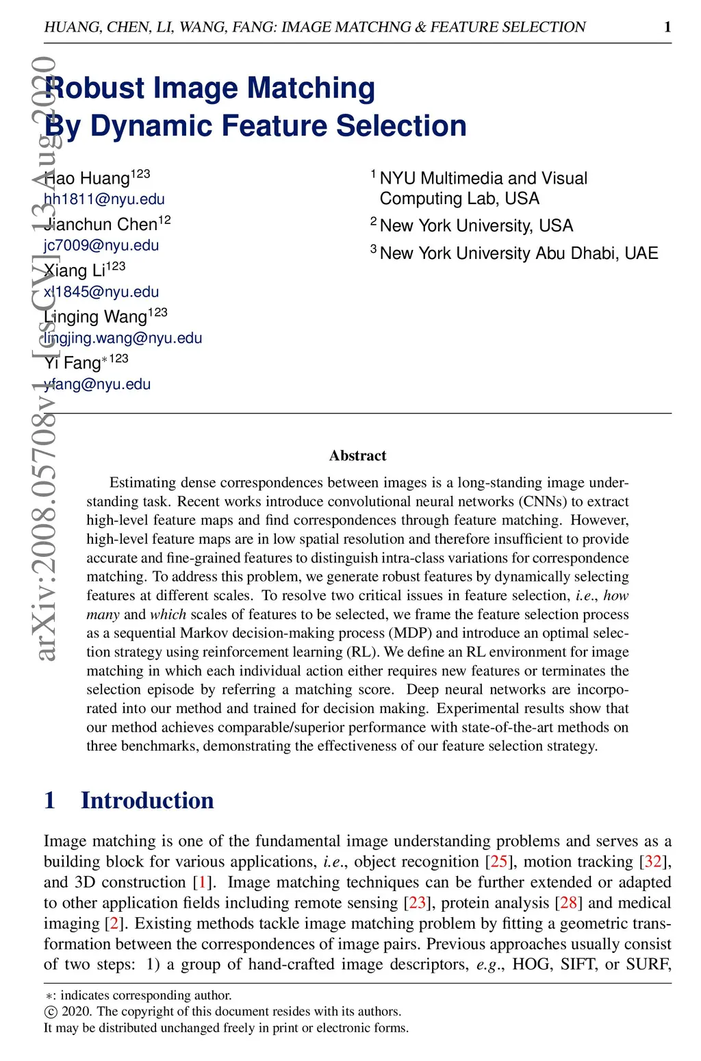 Robust Image Matching By Dynamic Feature Selection