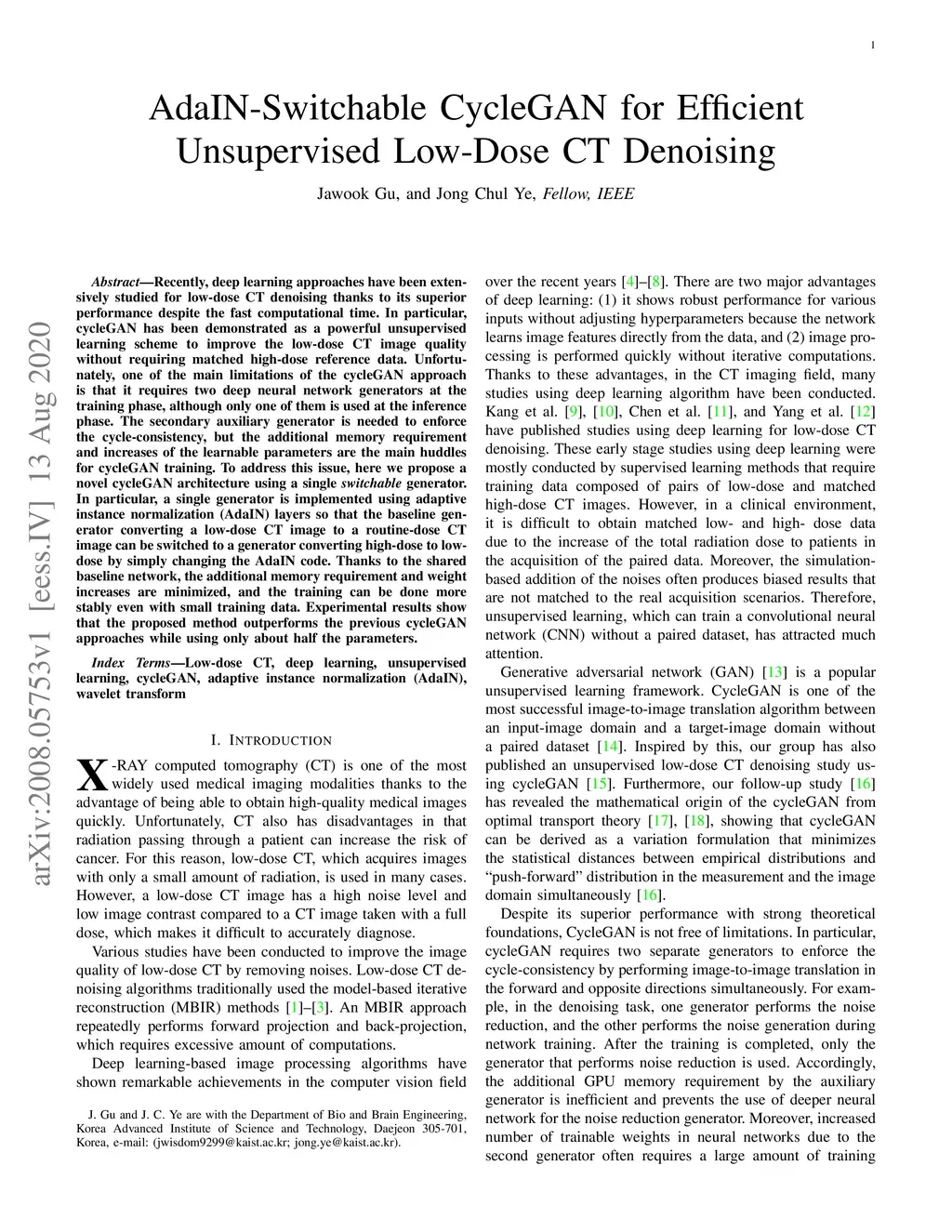 AdaIN-Switchable CycleGAN for Efficient Unsupervised Low-Dose CT