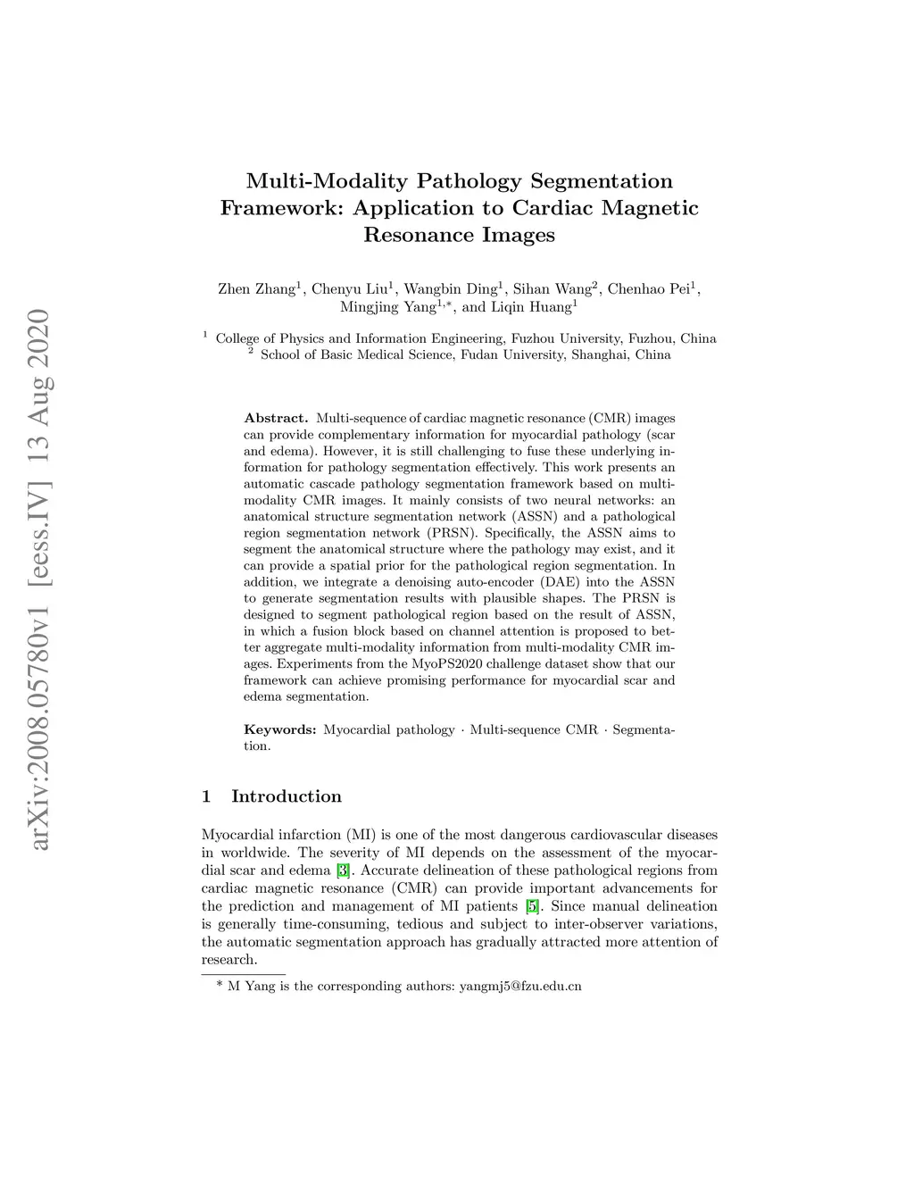 Multi-Modality Pathology Segmentation Framework: Application to Cardiac