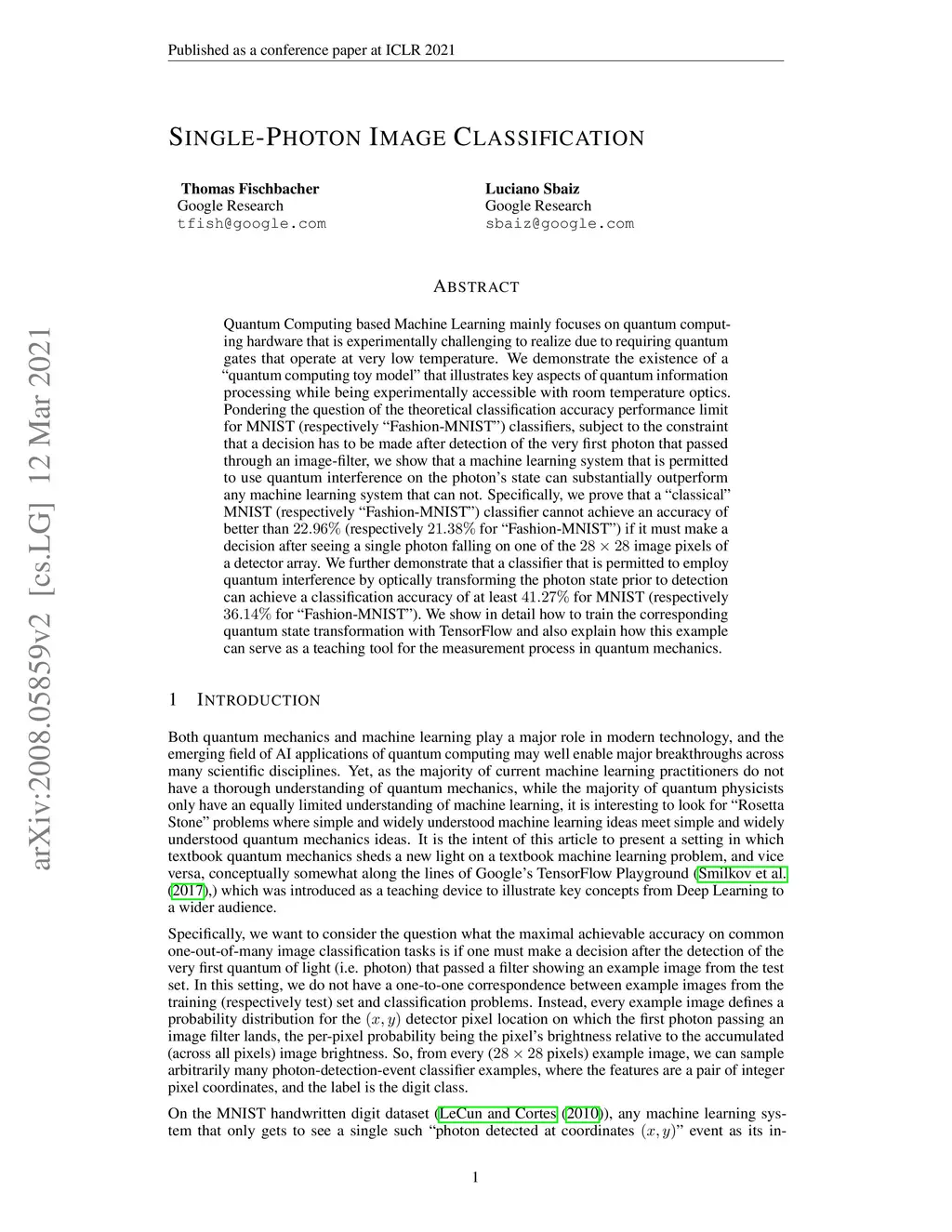 Single-Photon Image Classification