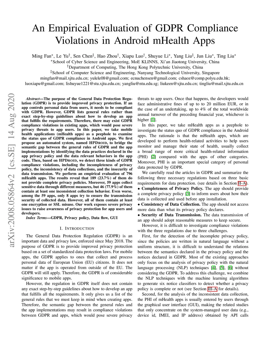 An Empirical Evaluation of GDPR Compliance Violations in Android mHealth