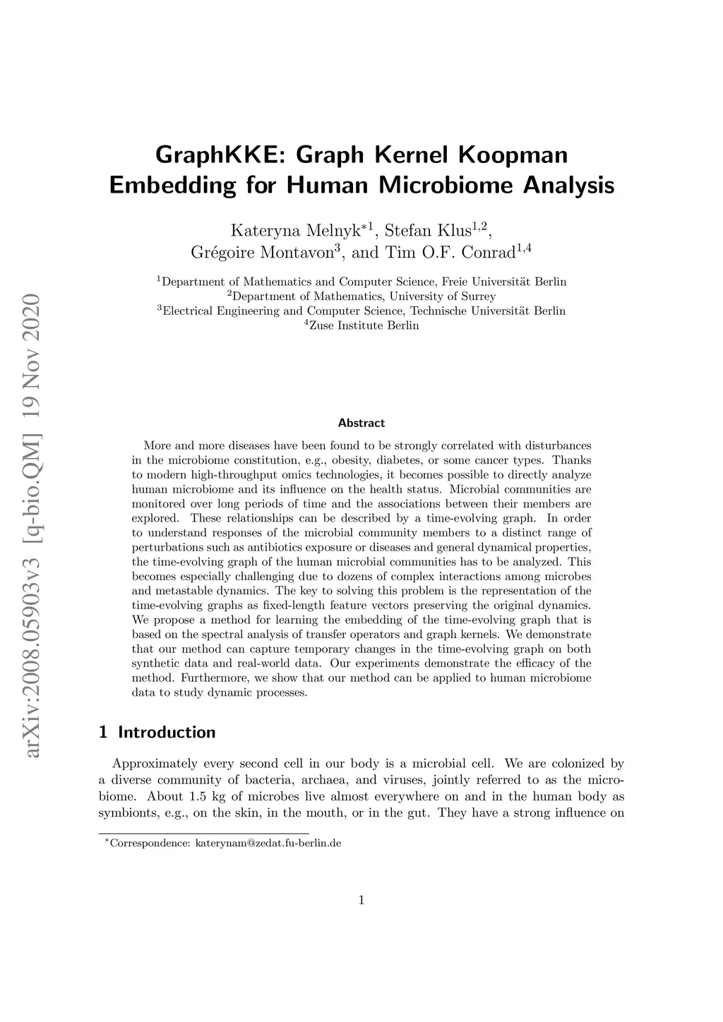 GraphKKE: Graph Kernel Koopman Embedding for Human Microbiome Analysis