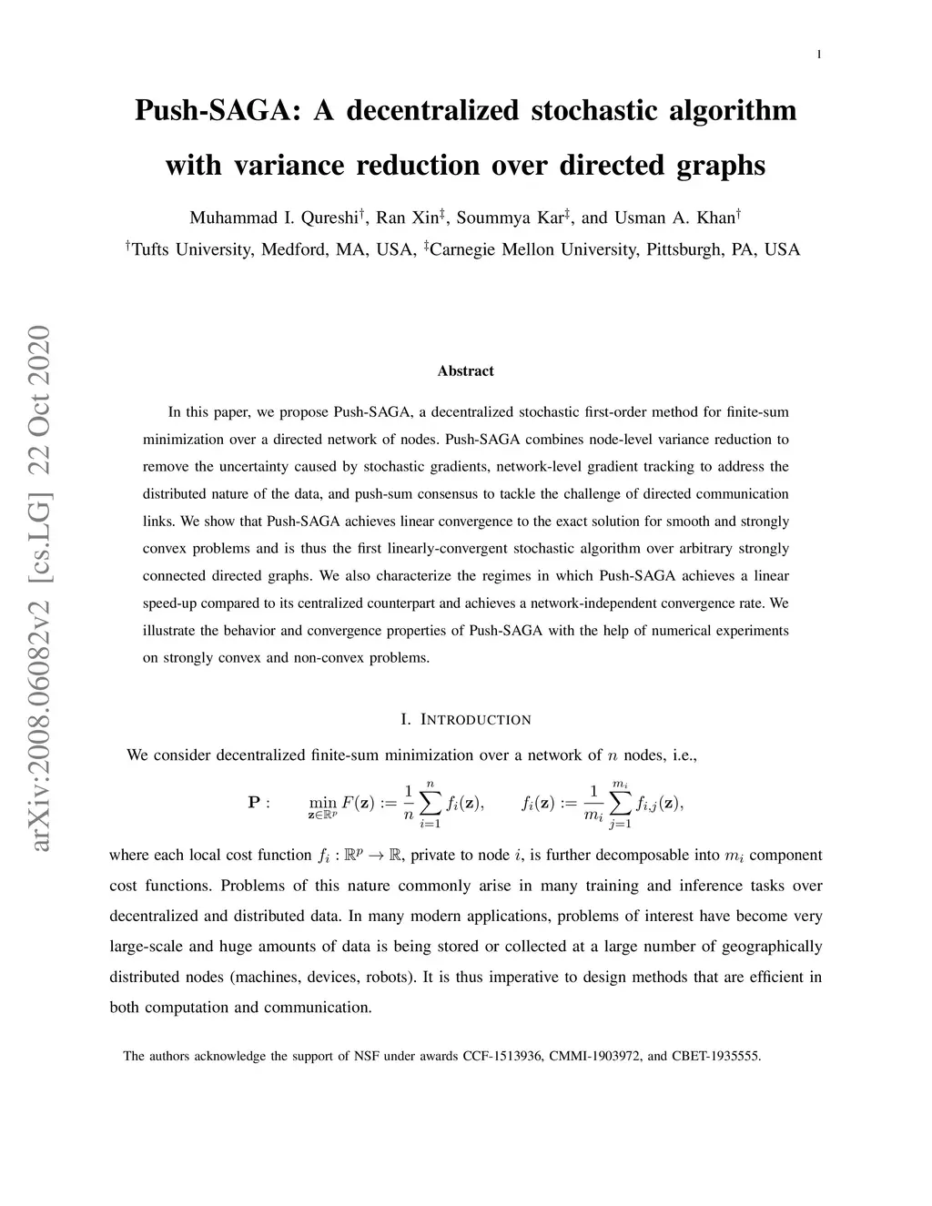 Push-SAGA: A decentralized stochastic algorithm with variance reduction