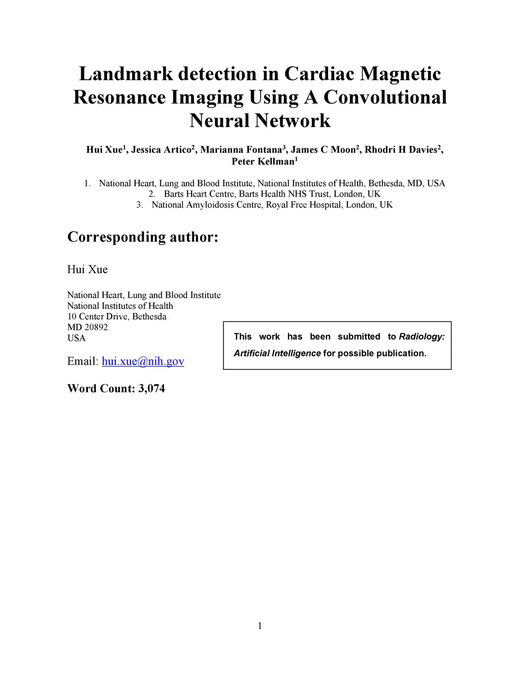 Landmark detection in Cardiac Magnetic Resonance Imaging Using A