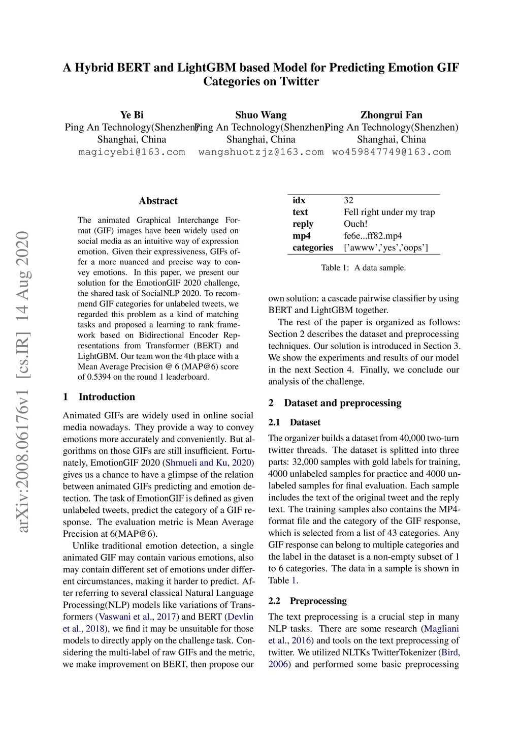 A Hybrid BERT and LightGBM based Model for Predicting Emotion GIF