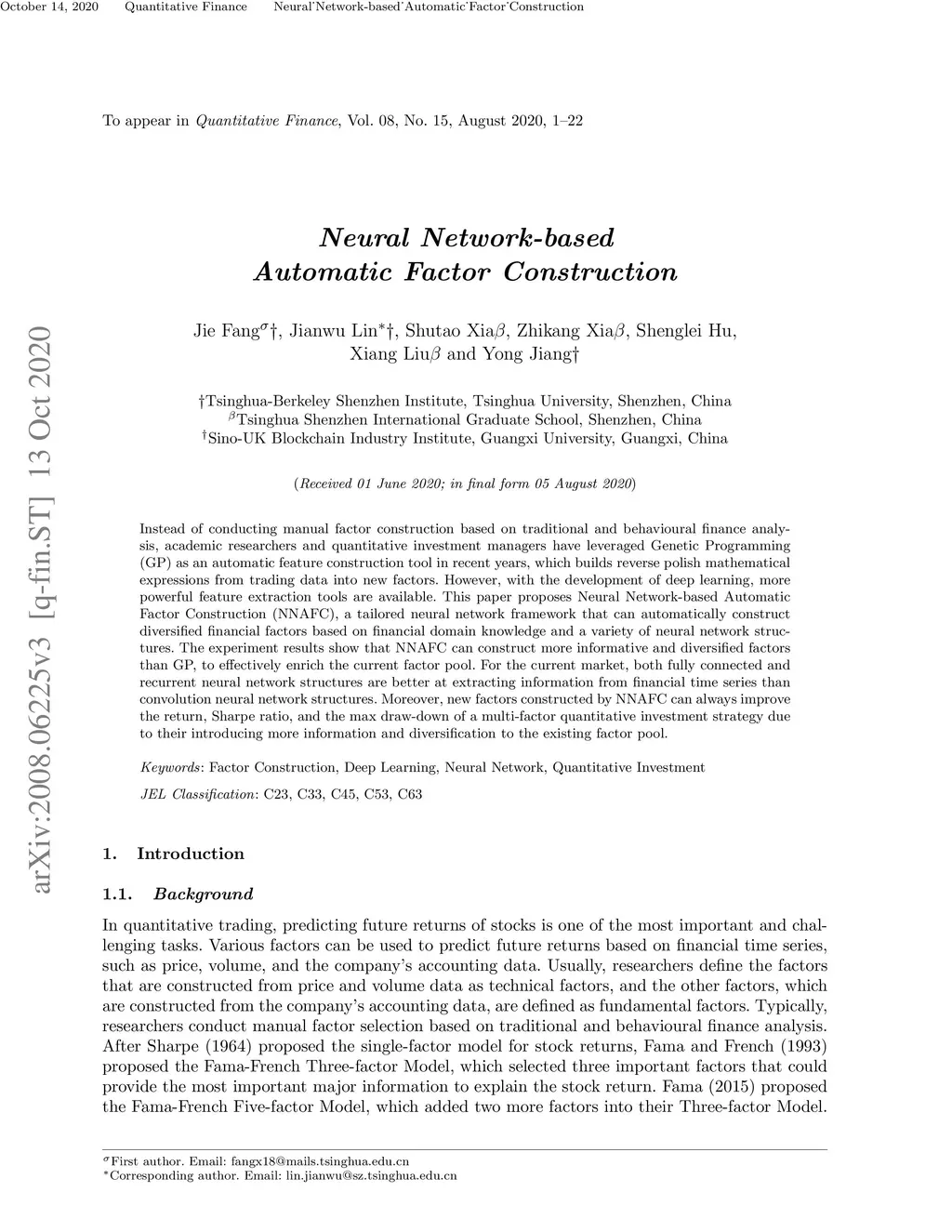 Instead of conducting manual factor construction based on traditional and behavioural finance analysis, academic researchers and quantitative investment managers have leveraged Genetic Programming (GP) as an automatic feature construction tool in recent years, which builds reverse polish mathematical expressions from trading data into new factors. However, with the development of deep learning, more powerful feature extraction tools are available. This paper proposes Neural Network-based Automatic Factor Construction (NNAFC), a tailored neural network framework that can automatically construct diversified financial factors based on financial domain knowledge and a variety of neural network structures. The experiment results show that NNAFC can construct more informative and diversified factors than GP, to effectively enrich the current factor pool. For the current market, both fully connected and recurrent neural network structures are better at extracting information from financial time series than convolution neural network structures. Moreover, new factors constructed by NNAFC can always improve the return, Sharpe ratio, and the max draw-down of a multi-factor quantitative investment strategy due to their introducing more information and diversification to the existing factor pool.