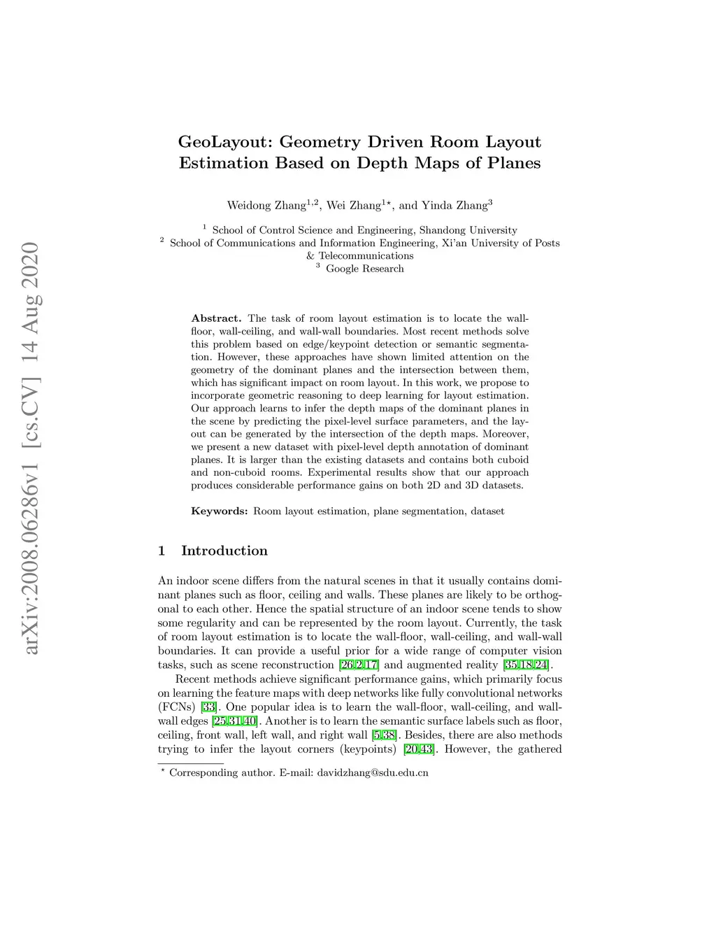 GeoLayout: Geometry Driven Room Layout Estimation Based on Depth Maps of