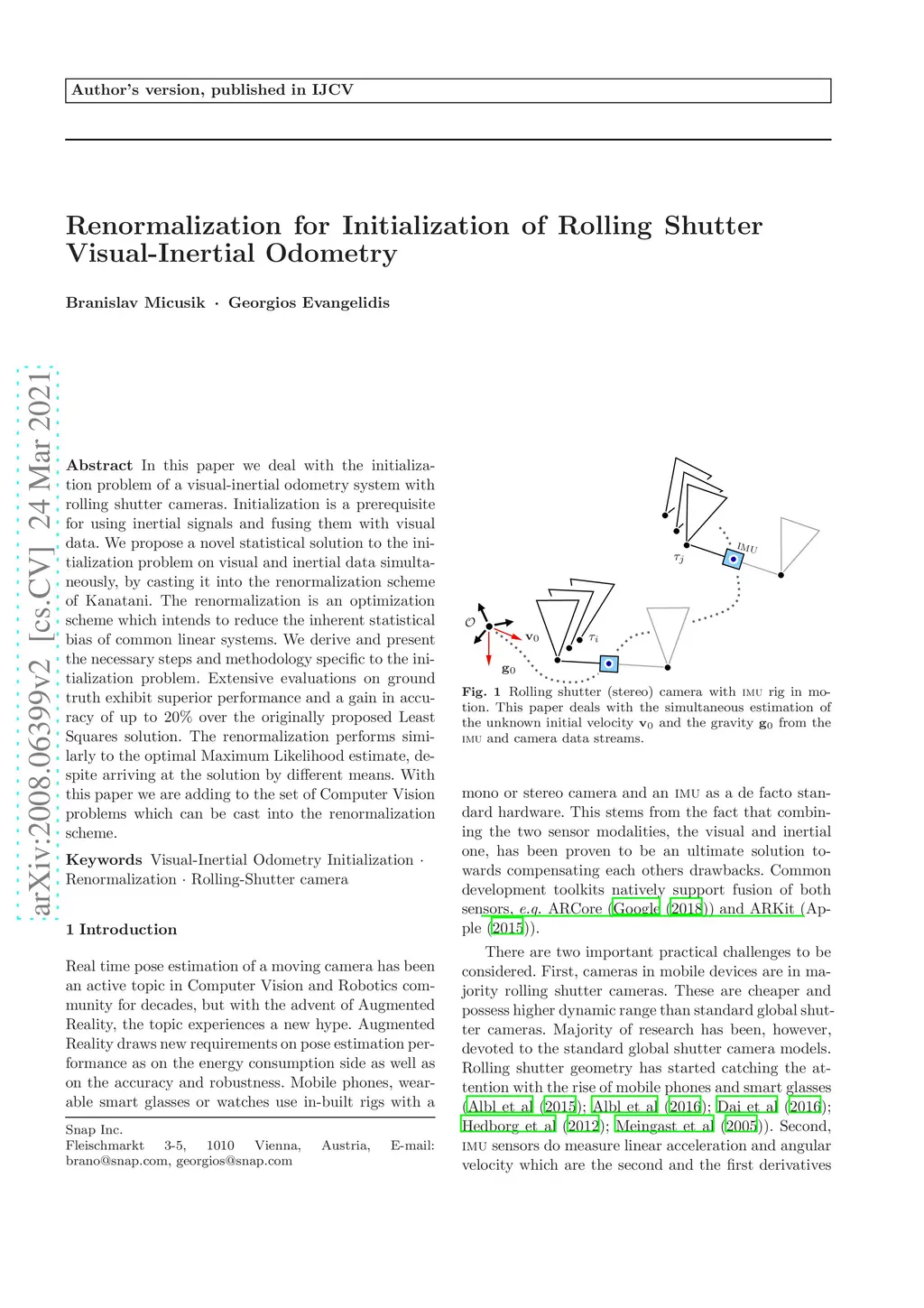 Renormalization for Initialization of Rolling Shutter Visual-Inertial