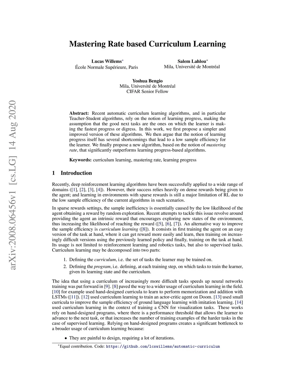 Recent automatic curriculum learning algorithms, and in particular Teacher-Student algorithms, rely on the notion of learning progress, making the assumption that the good next tasks are the ones on which the learner is making the fastest progress or digress. In this work, we first propose a simpler and improved version of these algorithms. We then argue that the notion of learning progress itself has several shortcomings that lead to a low sample efficiency for the learner. We finally propose a new algorithm, based on the notion of mastering rate, that significantly outperforms learning progress-based algorithms.