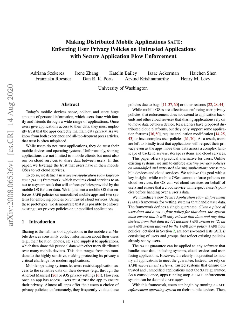 Making Distributed Mobile Applications SAFE: Enforcing User Privacy