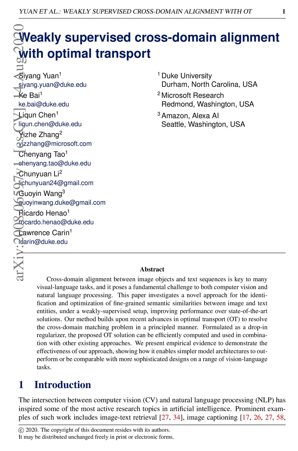 Weakly supervised cross-domain alignment with optimal transport