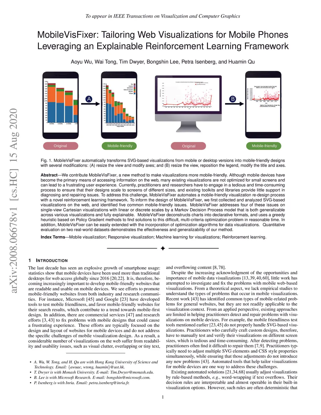 MobileVisFixer: Tailoring Web Visualizations for Mobile Phones