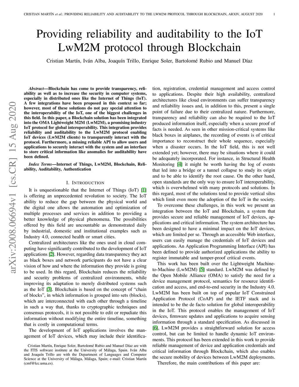 Providing reliability and auditability to the IoT LwM2M protocol through