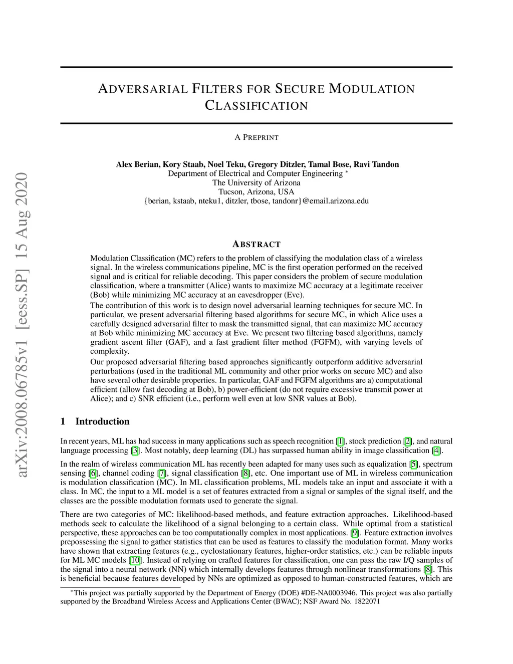 Adversarial Filters for Secure Modulation Classification
