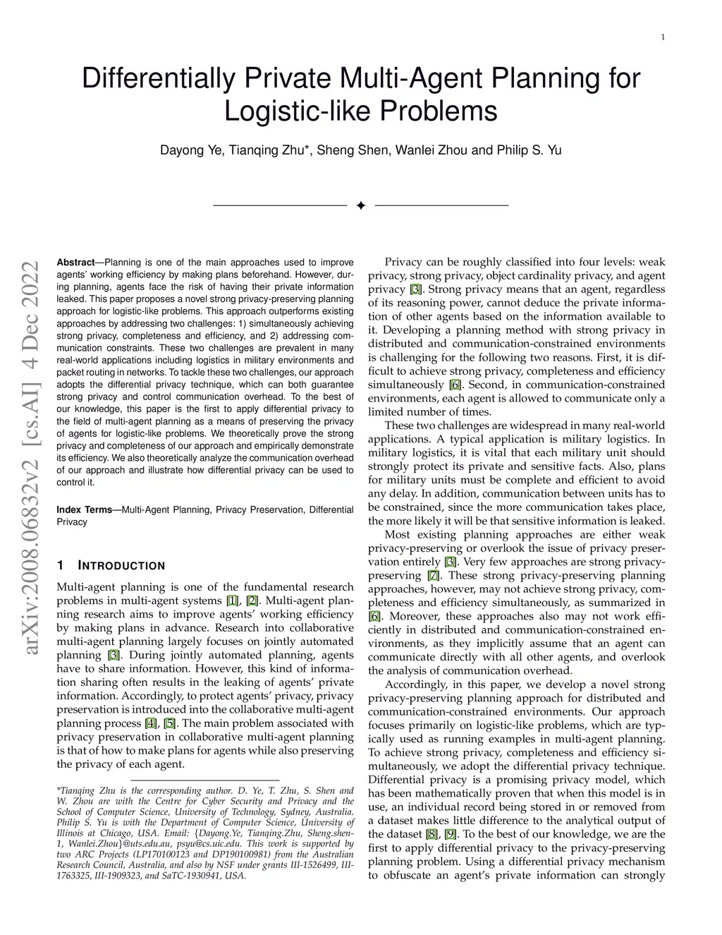 Planning is one of the main approaches used to improve agents' working efficiency by making plans beforehand. However, during planning, agents face the risk of having their private information leaked. This paper proposes a novel strong privacy-preserving planning approach for logistic-like problems. This approach outperforms existing approaches by addressing two challenges: 1) simultaneously achieving strong privacy, completeness and efficiency, and 2) addressing communication constraints. These two challenges are prevalent in many real-world applications including logistics in military environments and packet routing in networks. To tackle these two challenges, our approach adopts the differential privacy technique, which can both guarantee strong privacy and control communication overhead. To the best of our knowledge, this paper is the first to apply differential privacy to the field of multi-agent planning as a means of preserving the privacy of agents for logistic-like problems. We theoretically prove the strong privacy and completeness of our approach and empirically demonstrate its efficiency. We also theoretically analyze the communication overhead of our approach and illustrate how differential privacy can be used to control it.