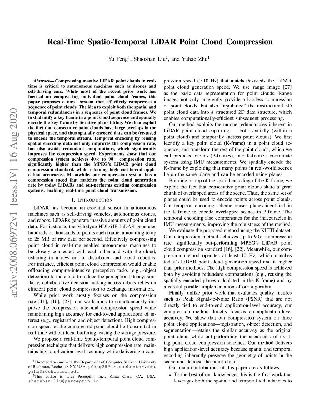 Real-Time Spatio-Temporal LiDAR Point Cloud Compression