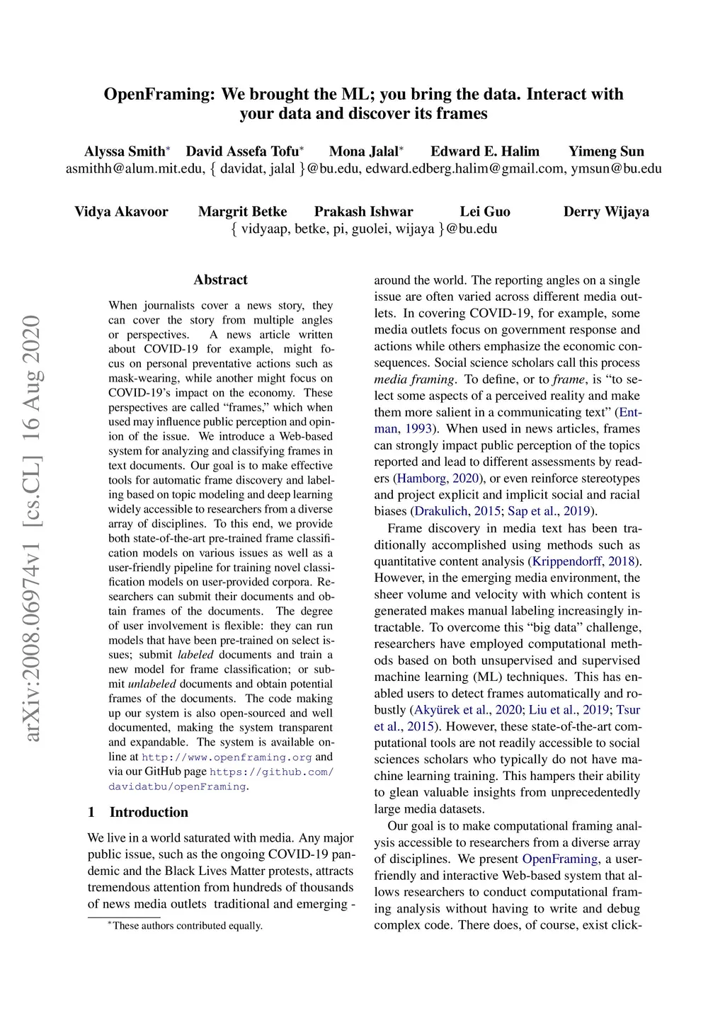 OpenFraming: We brought the ML; you bring the data. Interact with your