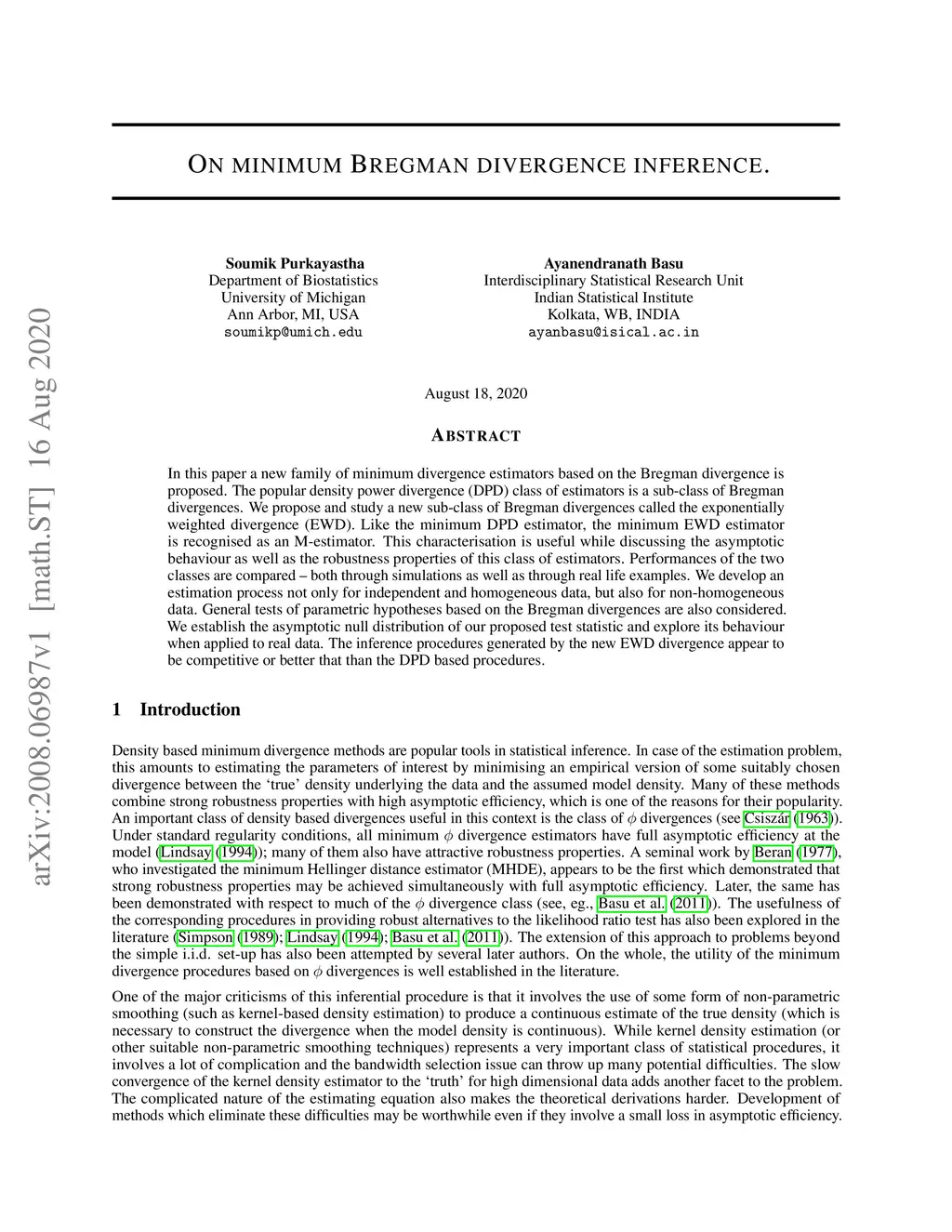 On minimum Bregman divergence inference