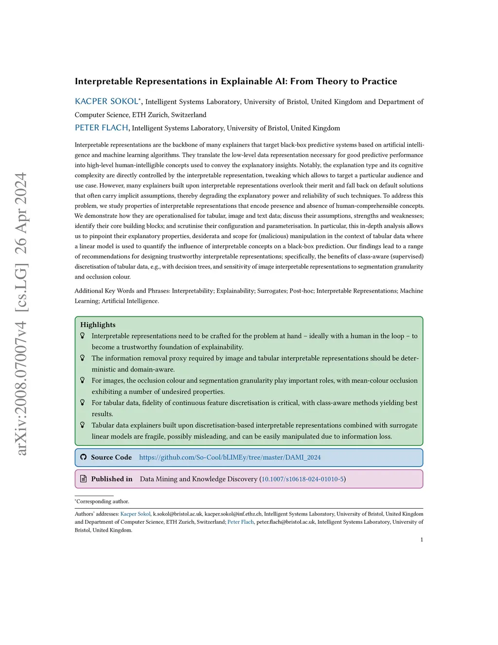 Interpretable Representations in Explainable AI: From Theory to Practice