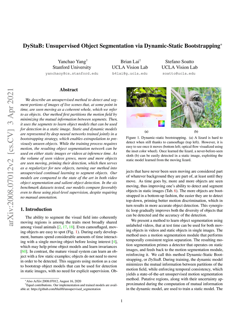 DyStaB: Unsupervised Object Segmentation via Dynamic-Static