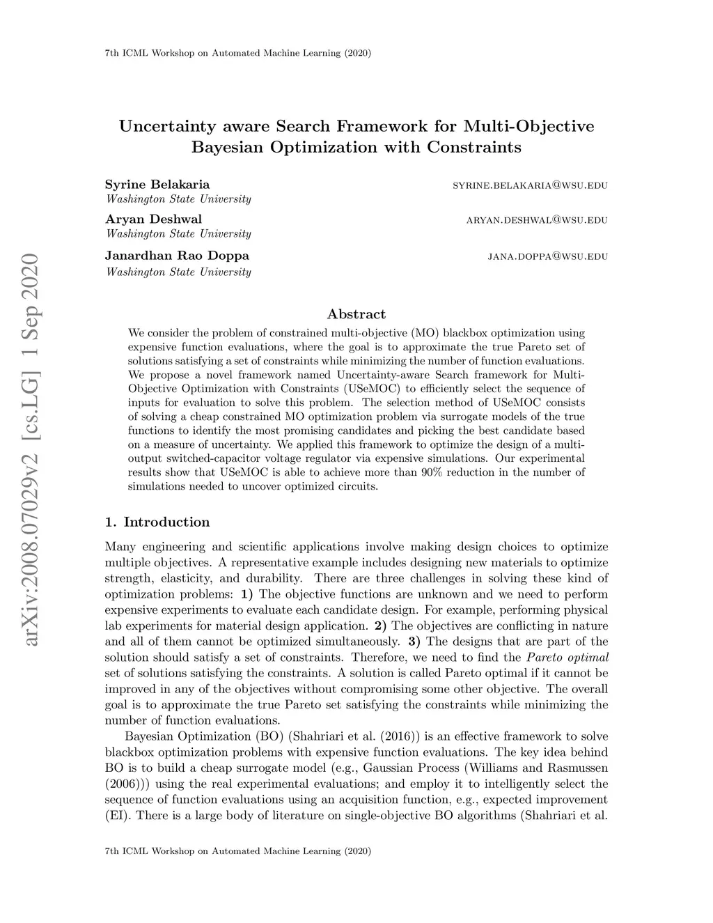 Uncertainty aware Search Framework for Multi-Objective Bayesian