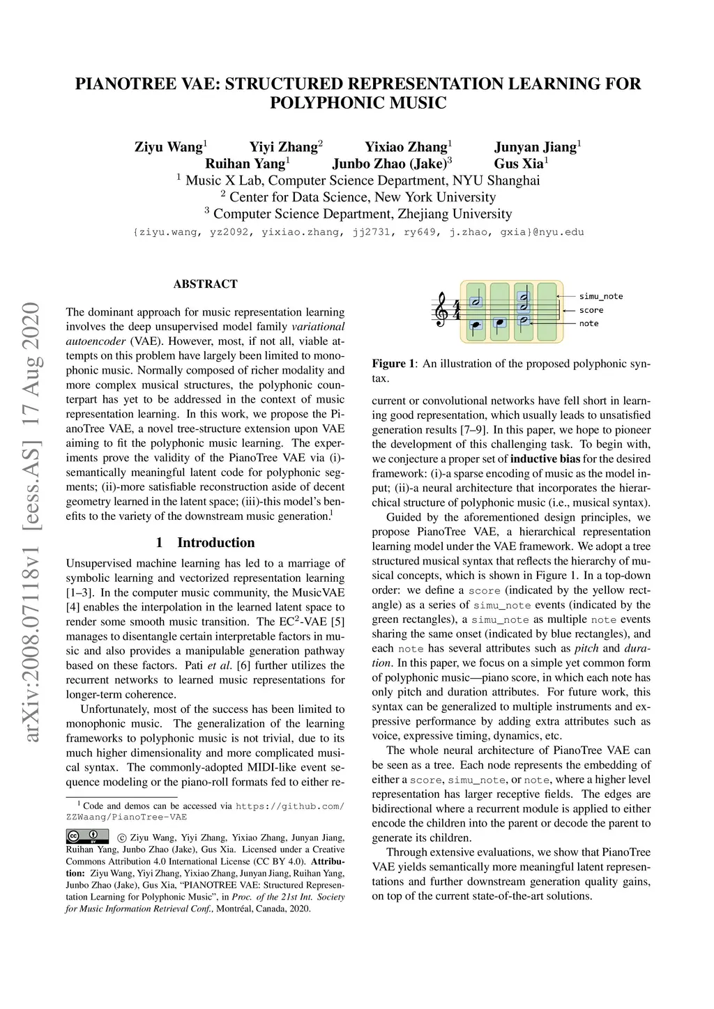 PIANOTREE VAE: Structured Representation Learning for Polyphonic Music