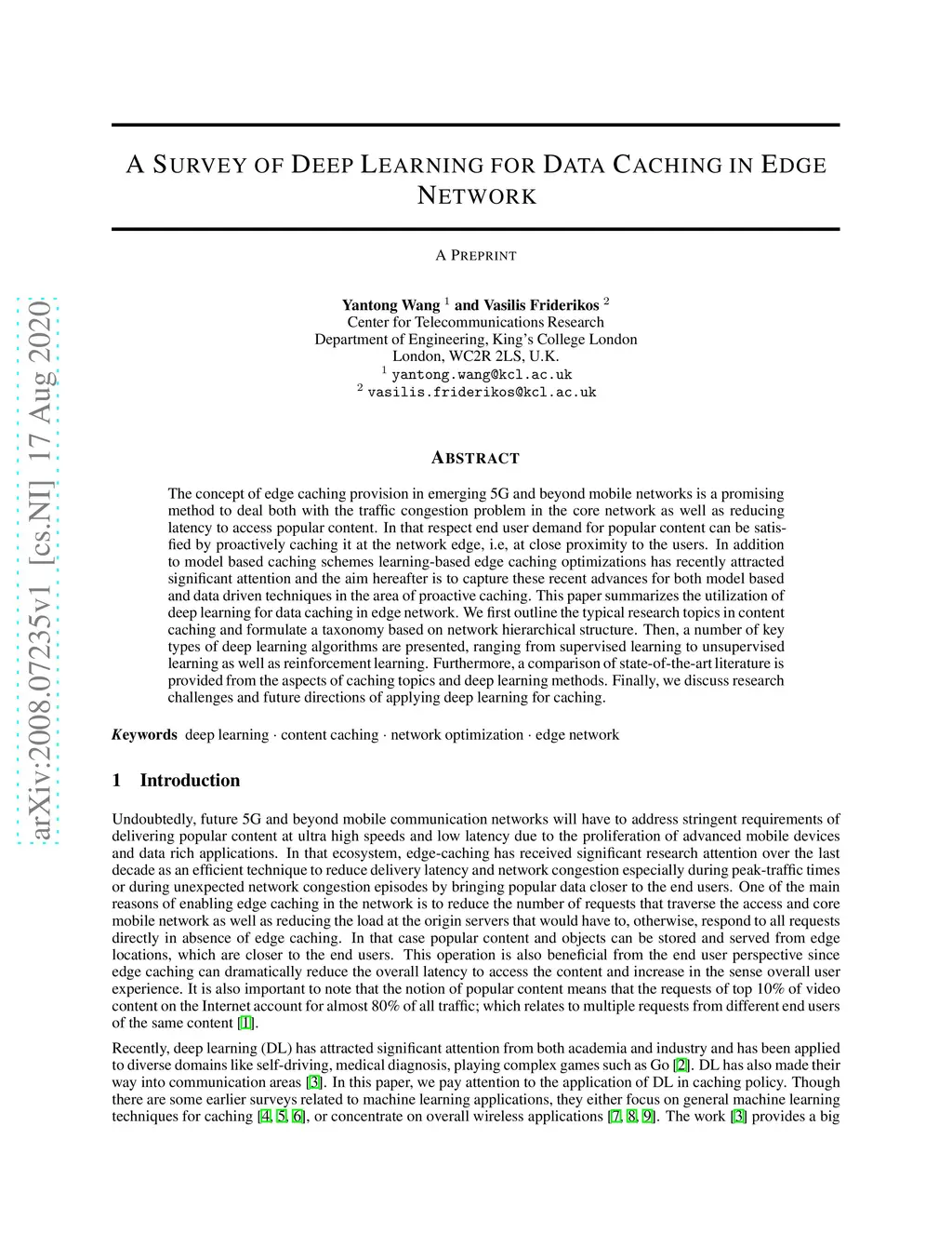 The concept of edge caching provision in emerging 5G and beyond mobile networks is a promising method to deal both with the traffic congestion problem in the core network as well as reducing latency to access popular content. In that respect end user demand for popular content can be satisfied by proactively caching it at the network edge, i.e, at close proximity to the users. In addition to model based caching schemes learning-based edge caching optimizations has recently attracted significant attention and the aim hereafter is to capture these recent advances for both model based and data driven techniques in the area of proactive caching. This paper summarizes the utilization of deep learning for data caching in edge network. We first outline the typical research topics in content caching and formulate a taxonomy based on network hierarchical structure. Then, a number of key types of deep learning algorithms are presented, ranging from supervised learning to unsupervised learning as well as reinforcement learning. Furthermore, a comparison of state-of-the-art literature is provided from the aspects of caching topics and deep learning methods. Finally, we discuss research challenges and future directions of applying deep learning for caching