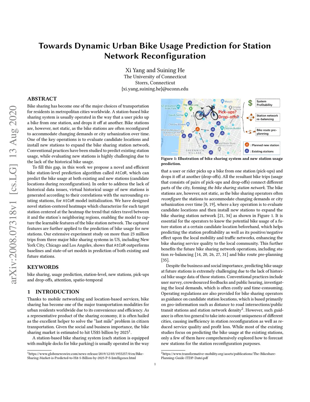Bike sharing has become one of the major choices of transportation for residents in metropolitan cities worldwide. A station-based bike sharing system is usually operated in the way that a user picks up a bike from one station, and drops it off at another. Bike stations are, however, not static, as the bike stations are often reconfigured to accommodate changing demands or city urbanization over time. One of the key operations is to evaluate candidate locations and install new stations to expand the bike sharing station network. Conventional practices have been studied to predict existing station usage, while evaluating new stations is highly challenging due to the lack of the historical bike usage. To fill this gap, in this work we propose a novel and efficient bike station-level prediction algorithm called AtCoR, which can predict the bike usage at both existing and new stations (candidate locations during reconfiguration). In order to address the lack of historical data issues, virtual historical usage of new stations is generated according to their correlations with the surrounding existing stations, for AtCoR model initialization. We have designed novel station-centered heatmaps which characterize for each target station centered at the heatmap the trend that riders travel between it and the station's neighboring regions, enabling the model to capture the learnable features of the bike station network. The captured features are further applied to the prediction of bike usage for new stations. Our extensive experiment study on more than 23 million trips from three major bike sharing systems in US, including New York City, Chicago and Los Angeles, shows that AtCoR outperforms baselines and state-of-art models in prediction of both existing and future stations.
