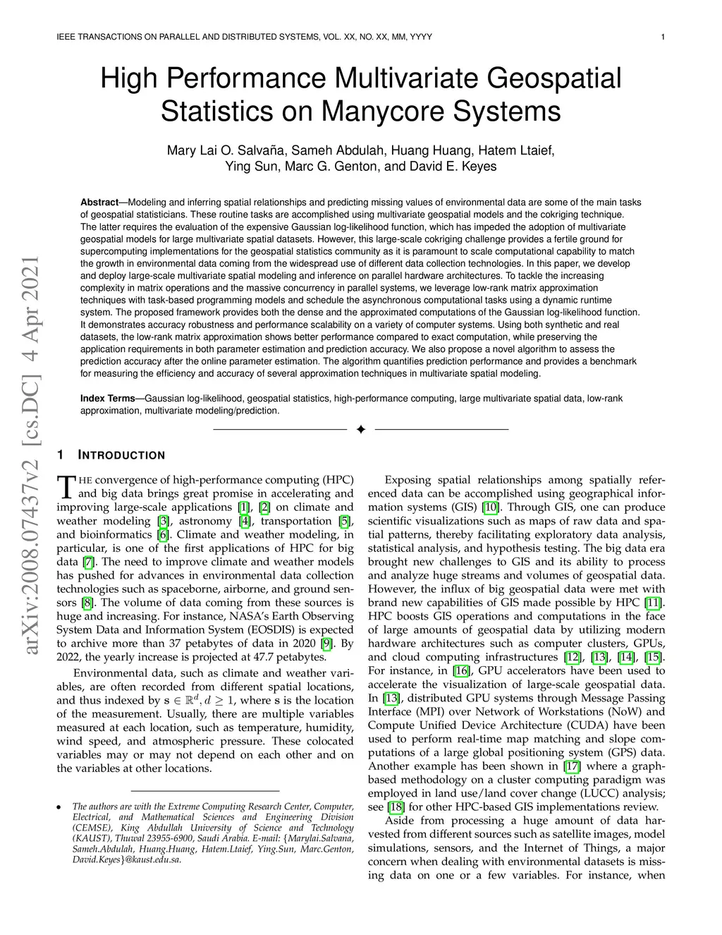 High Performance Multivariate Geospatial Statistics on Manycore Systems
