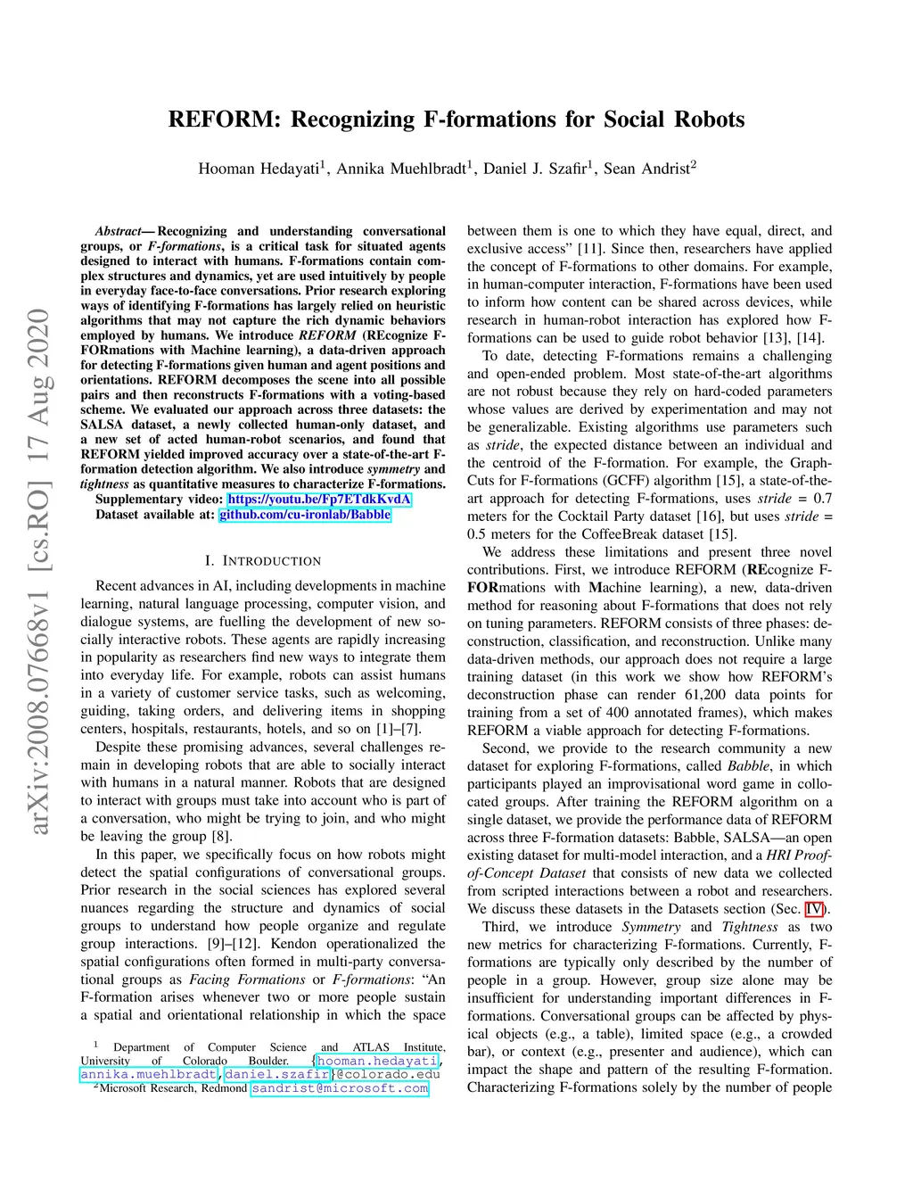 REFORM: Recognizing F-formations for Social Robots