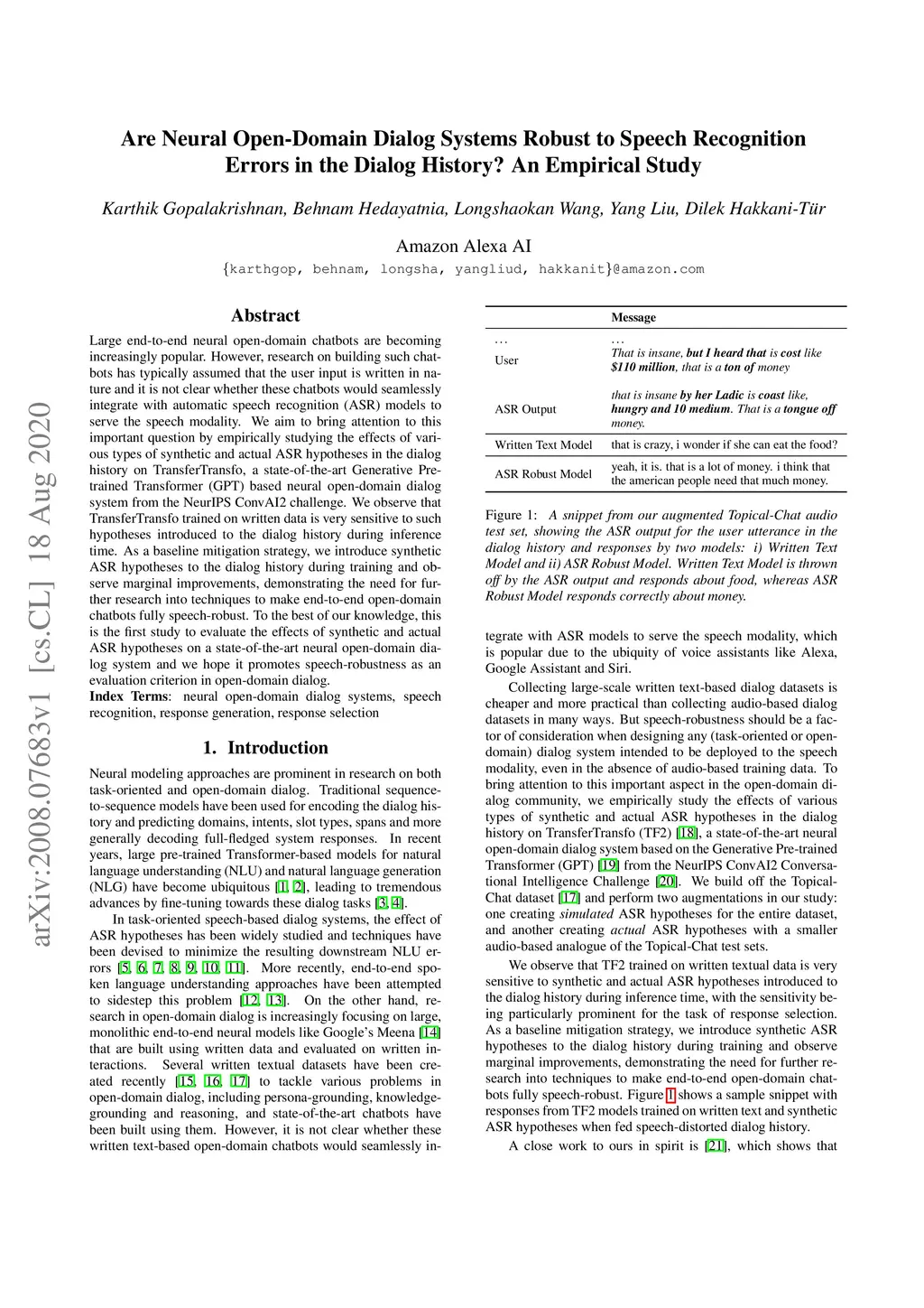 Are Neural Open-Domain Dialog Systems Robust to Speech Recognition