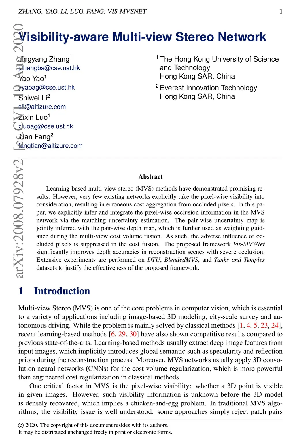 Learning-based multi-view stereo (MVS) methods have demonstrated promising results. However, very few existing networks explicitly take the pixel-wise visibility into consideration, resulting in erroneous cost aggregation from occluded pixels. In this paper, we explicitly infer and integrate the pixel-wise occlusion information in the MVS network via the matching uncertainty estimation. The pair-wise uncertainty map is jointly inferred with the pair-wise depth map, which is further used as weighting guidance during the multi-view cost volume fusion. As such, the adverse influence of occluded pixels is suppressed in the cost fusion. The proposed framework Vis-MVSNet significantly improves depth accuracies in the scenes with severe occlusion. Extensive experiments are performed on DTU, BlendedMVS, and Tanks and Temples datasets to justify the effectiveness of the proposed framework.