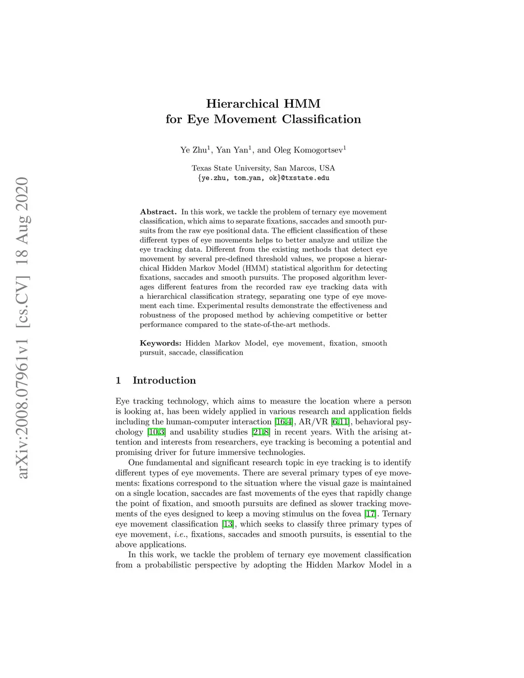 Hierarchical HMM for Eye Movement Classification