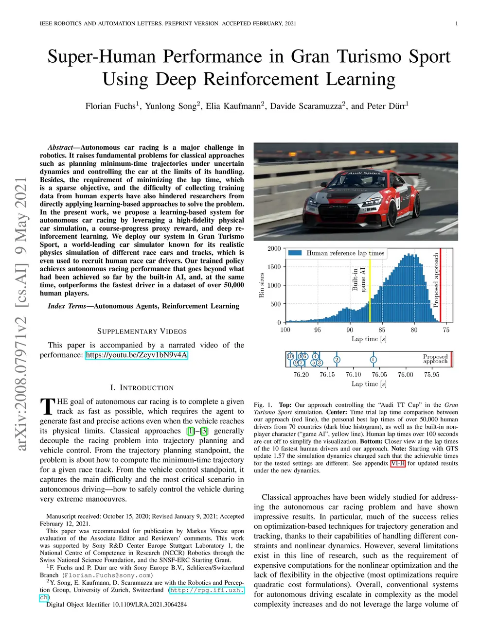 Super-Human Performance in Gran Turismo Sport Using Deep Reinforcement