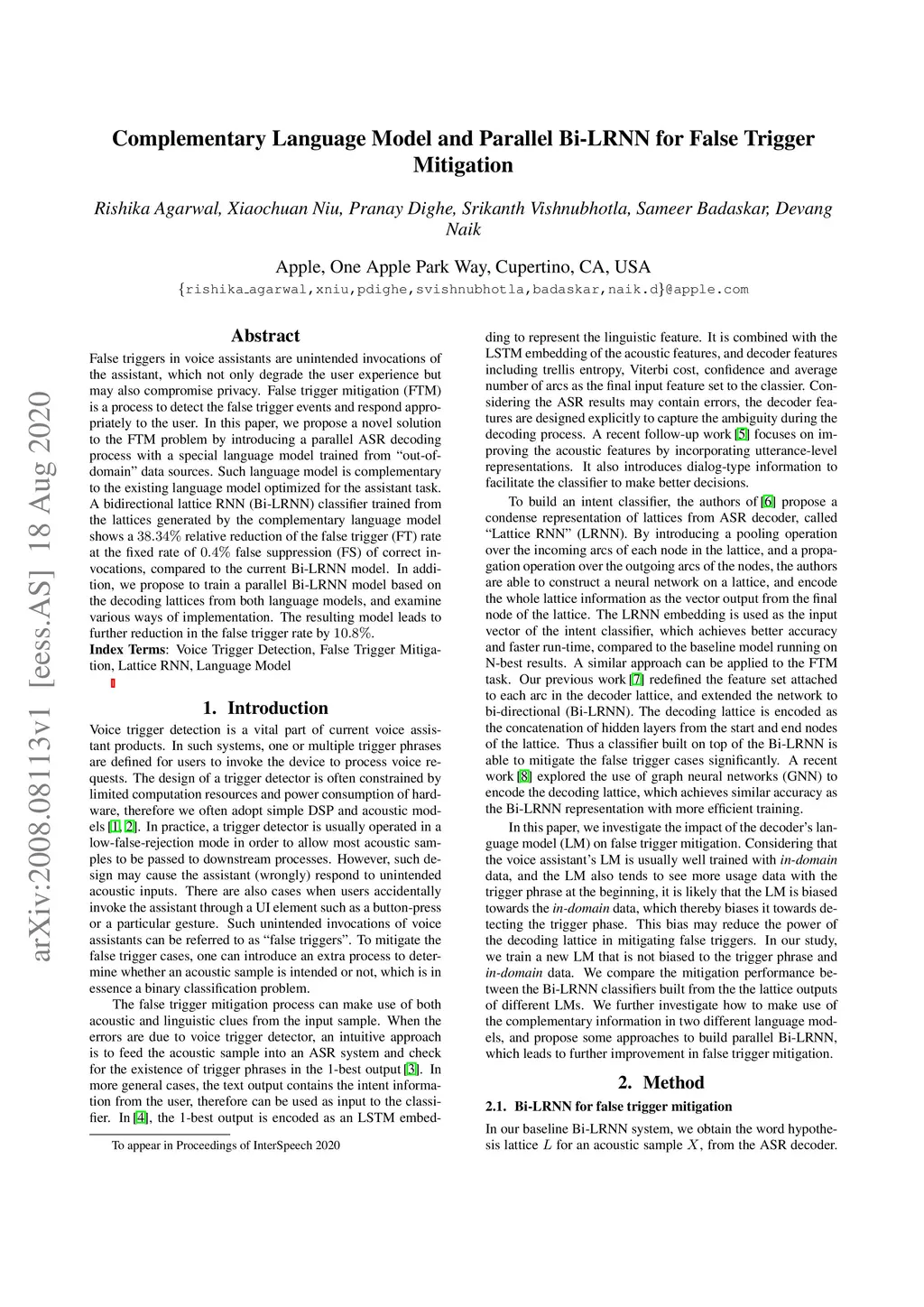Complementary Language Model and Parallel Bi-LRNN for False Trigger