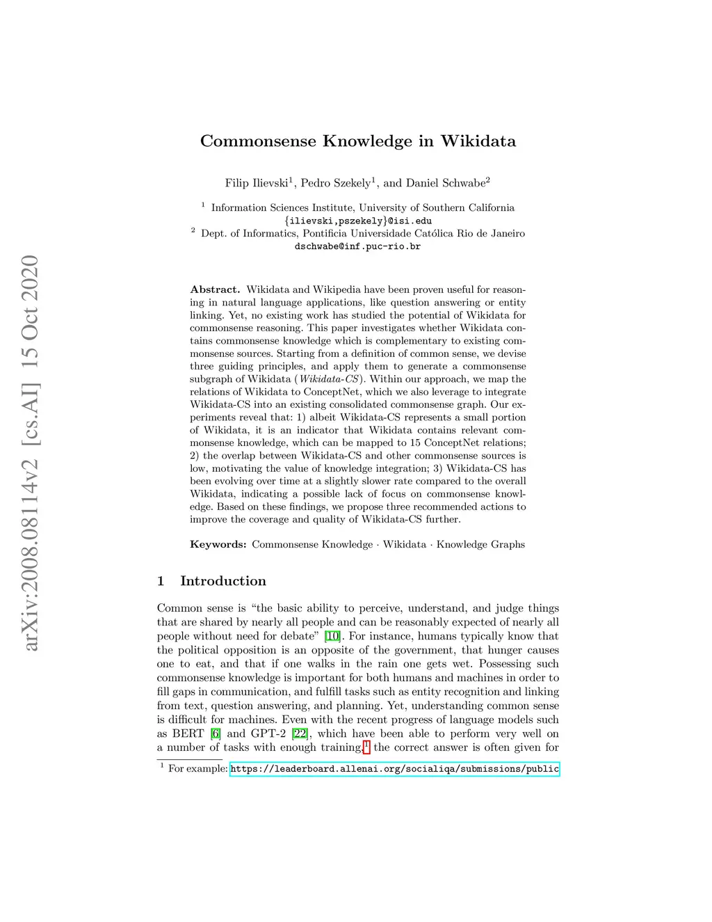 Commonsense Knowledge in Wikidata