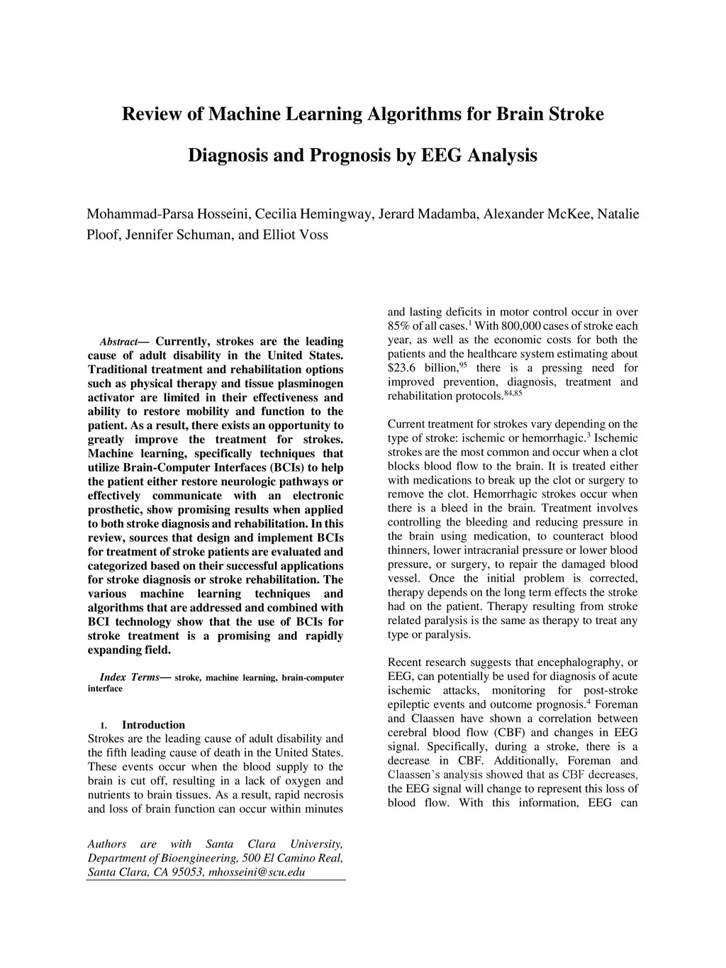 Review of Machine Learning Algorithms for Brain Stroke Diagnosis and