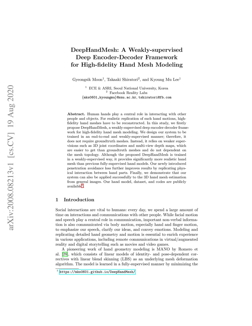 DeepHandMesh: A Weakly-supervised Deep Encoder-Decoder Framework for