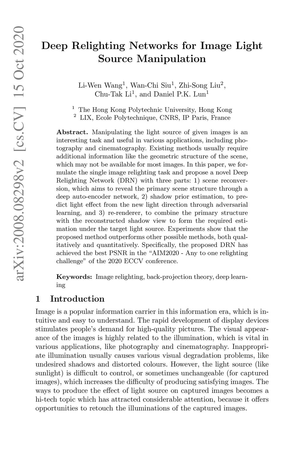 Manipulating the light source of given images is an interesting task and useful in various applications, including photography and cinematography. Existing methods usually require additional information like the geometric structure of the scene, which may not be available for most images. In this paper, we formulate the single image relighting task and propose a novel Deep Relighting Network (DRN) with three parts: 1) scene reconversion, which aims to reveal the primary scene structure through a deep auto-encoder network, 2) shadow prior estimation, to predict light effect from the new light direction through adversarial learning, and 3) re-renderer, to combine the primary structure with the reconstructed shadow view to form the required estimation under the target light source. Experimental results show that the proposed method outperforms other possible methods, both qualitatively and quantitatively. Specifically, the proposed DRN has achieved the best PSNR in the "AIM2020 - Any to one relighting challenge" of the 2020 ECCV conference.