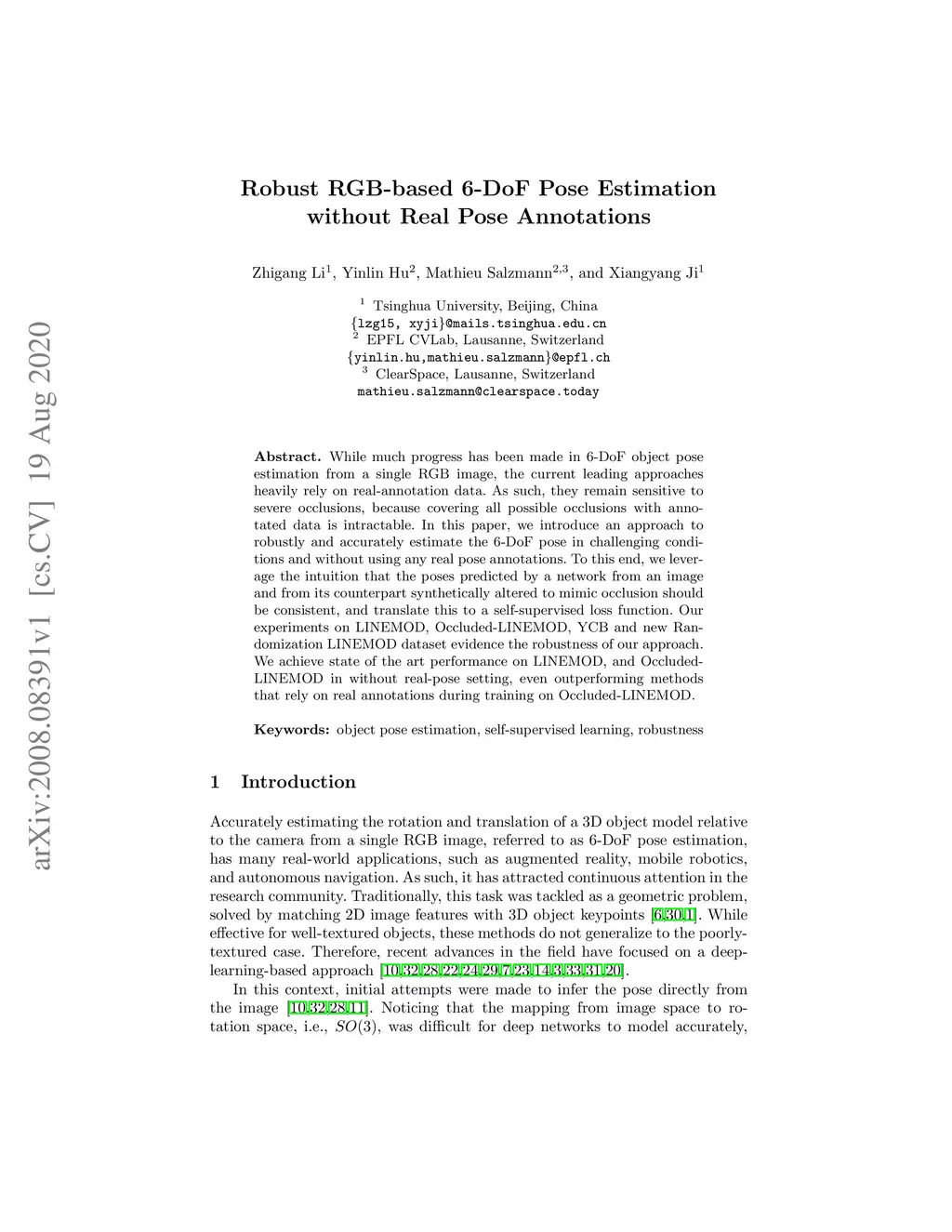 Robust RGB-based 6-DoF Pose Estimation without Real Pose Annotations