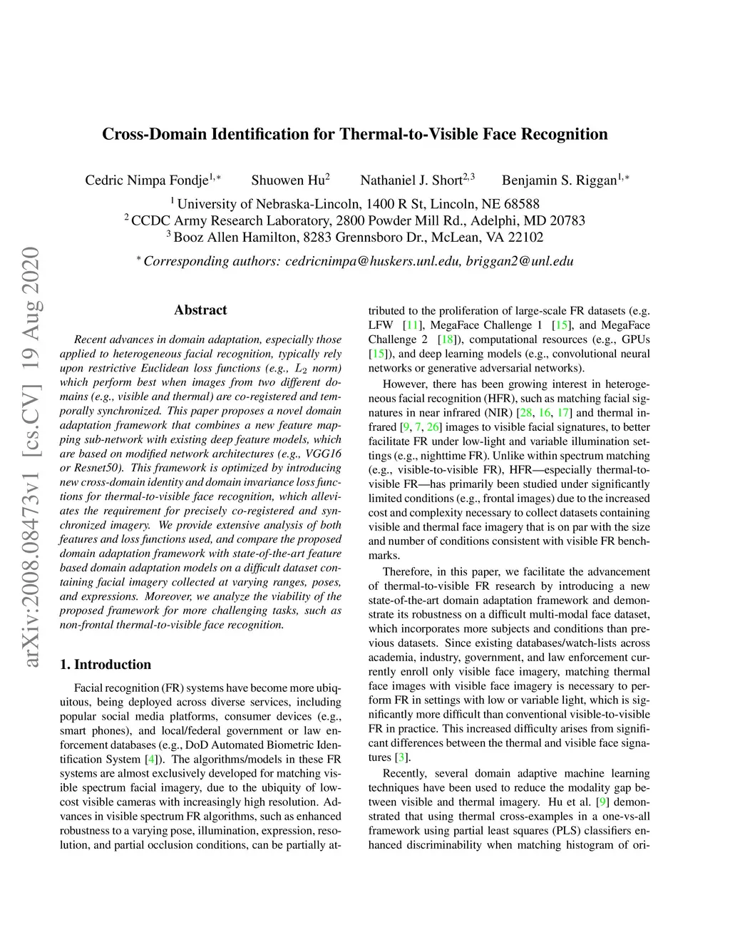 Cross-Domain Identification for Thermal-to-Visible Face Recognition