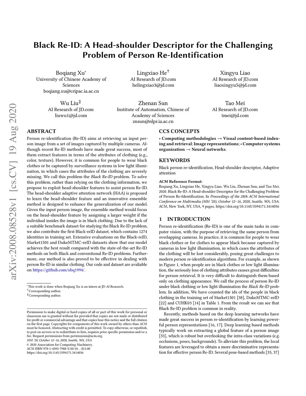 Black Re-ID: A Head-shoulder Descriptor for the Challenging Problem of