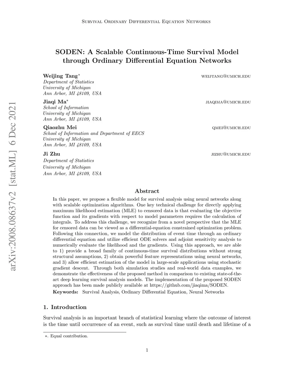 SODEN: A Scalable Continuous-Time Survival Model through Ordinary