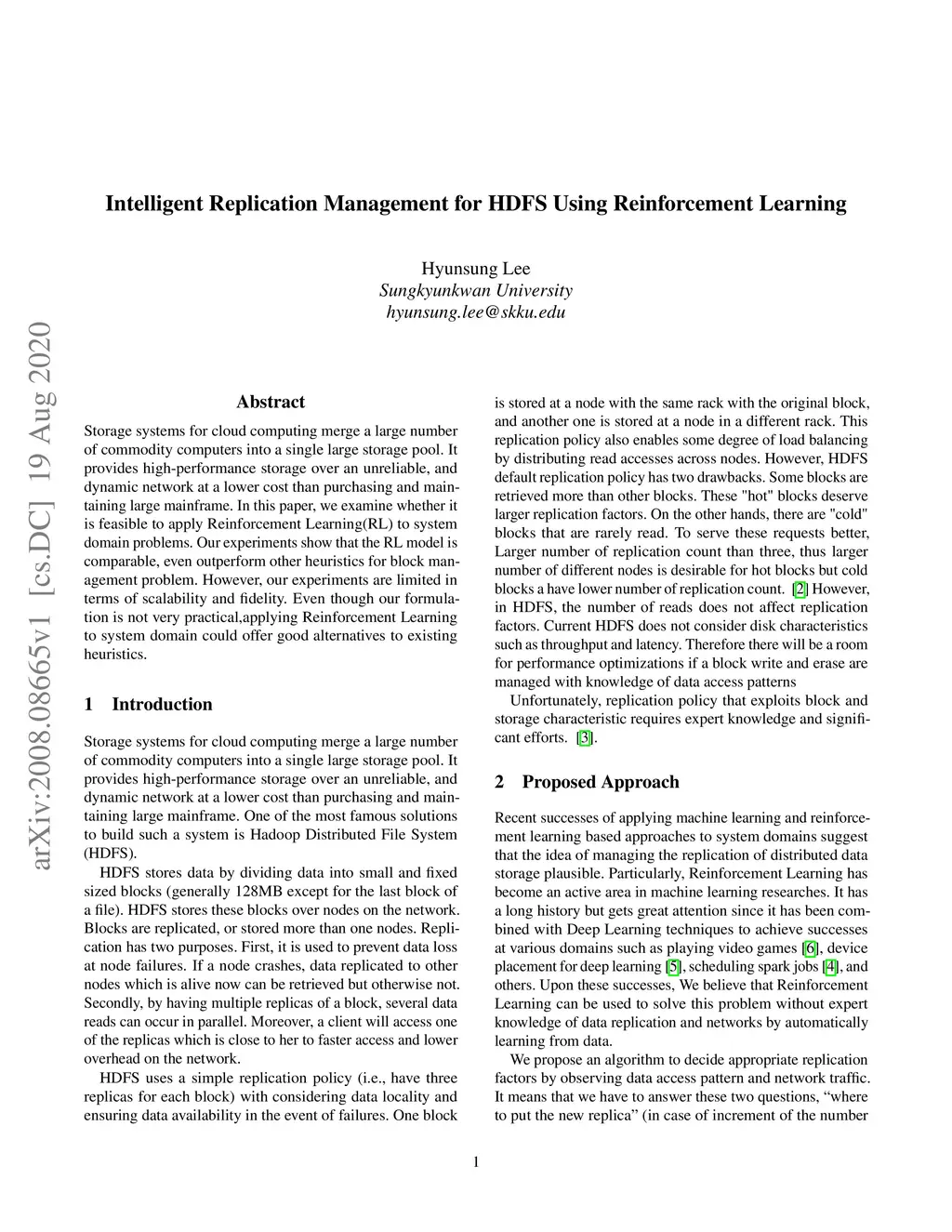 Intelligent Replication Management for HDFS Using Reinforcement Learning