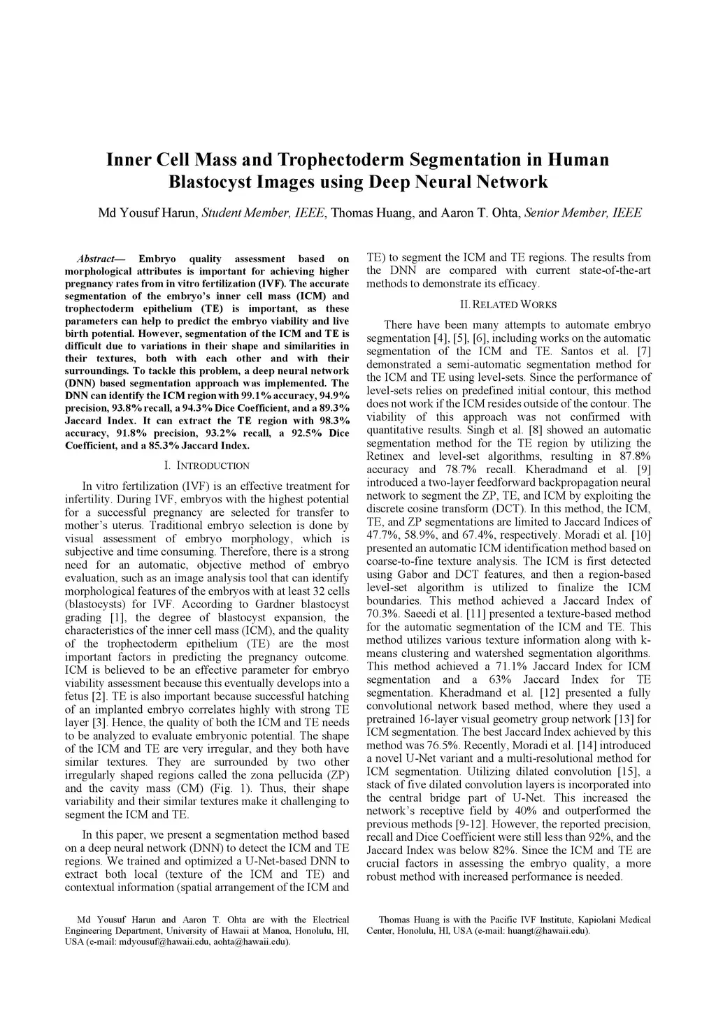 Inner Cell Mass and Trophectoderm Segmentation in Human Blastocyst