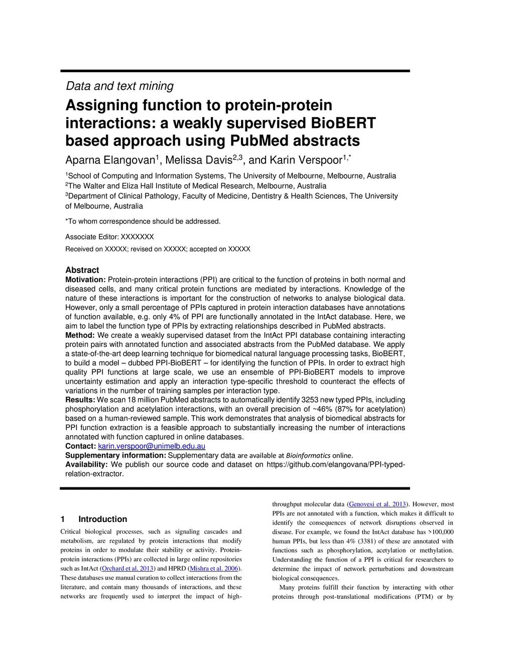 Motivation: Protein-protein interactions (PPI) are critical to the function of proteins in both normal and diseased cells, and many critical protein functions are mediated by interactions.Knowledge of the nature of these interactions is important for the construction of networks to analyse biological data. However, only a small percentage of PPIs captured in protein interaction databases have annotations of function available, e.g. only 4% of PPI are functionally annotated in the IntAct database. Here, we aim to label the function type of PPIs by extracting relationships described in PubMed abstracts. Method: We create a weakly supervised dataset from the IntAct PPI database containing interacting protein pairs with annotated function and associated abstracts from the PubMed database. We apply a state-of-the-art deep learning technique for biomedical natural language processing tasks, BioBERT, to build a model - dubbed PPI-BioBERT - for identifying the function of PPIs. In order to extract high quality PPI functions at large scale, we use an ensemble of PPI-BioBERT models to improve uncertainty estimation and apply an interaction type-specific threshold to counteract the effects of variations in the number of training samples per interaction type. Results: We scan 18 million PubMed abstracts to automatically identify 3253 new typed PPIs, including phosphorylation and acetylation interactions, with an overall precision of 46% (87% for acetylation) based on a human-reviewed sample. This work demonstrates that analysis of biomedical abstracts for PPI function extraction is a feasible approach to substantially increasing the number of interactions annotated with function captured in online databases.