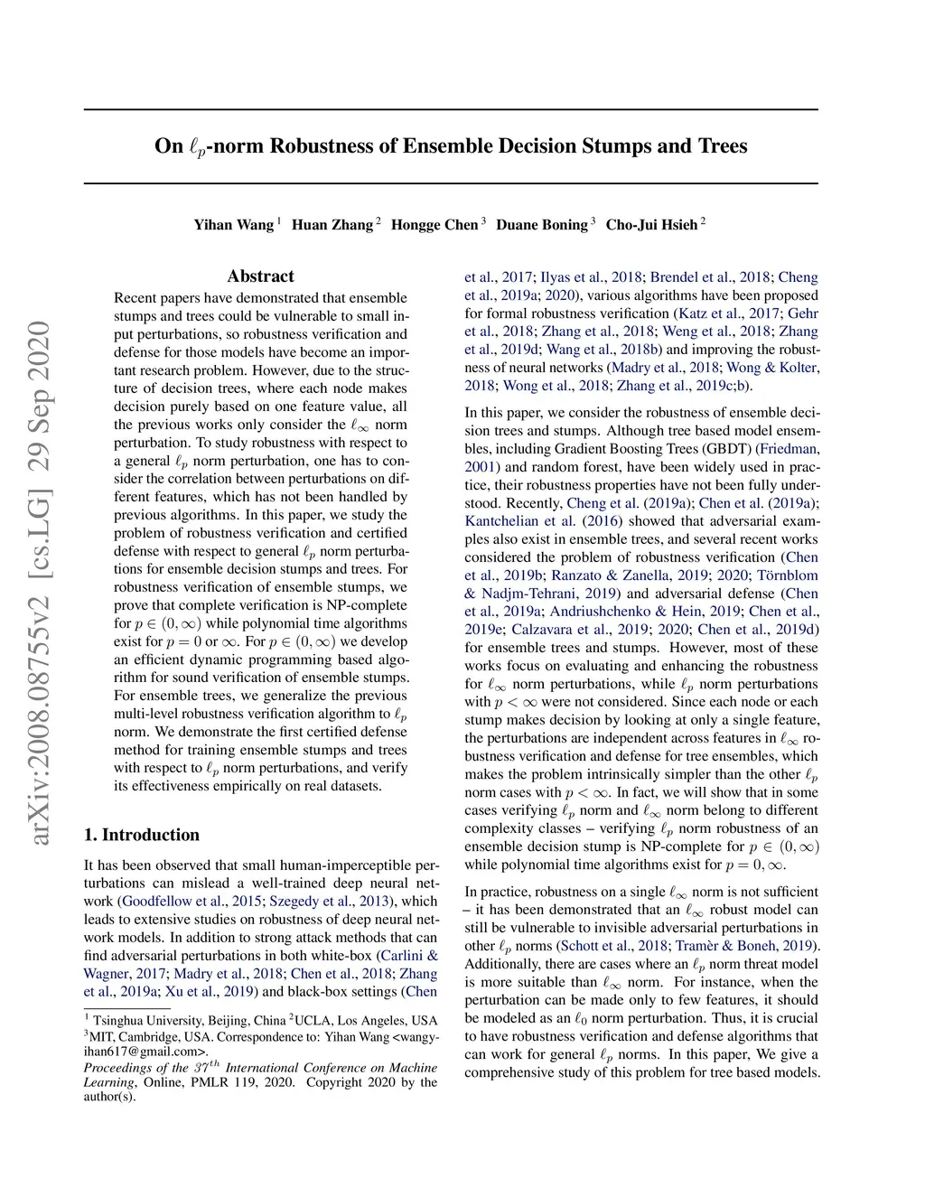 On -norm Robustness of Ensemble Stumps and Trees