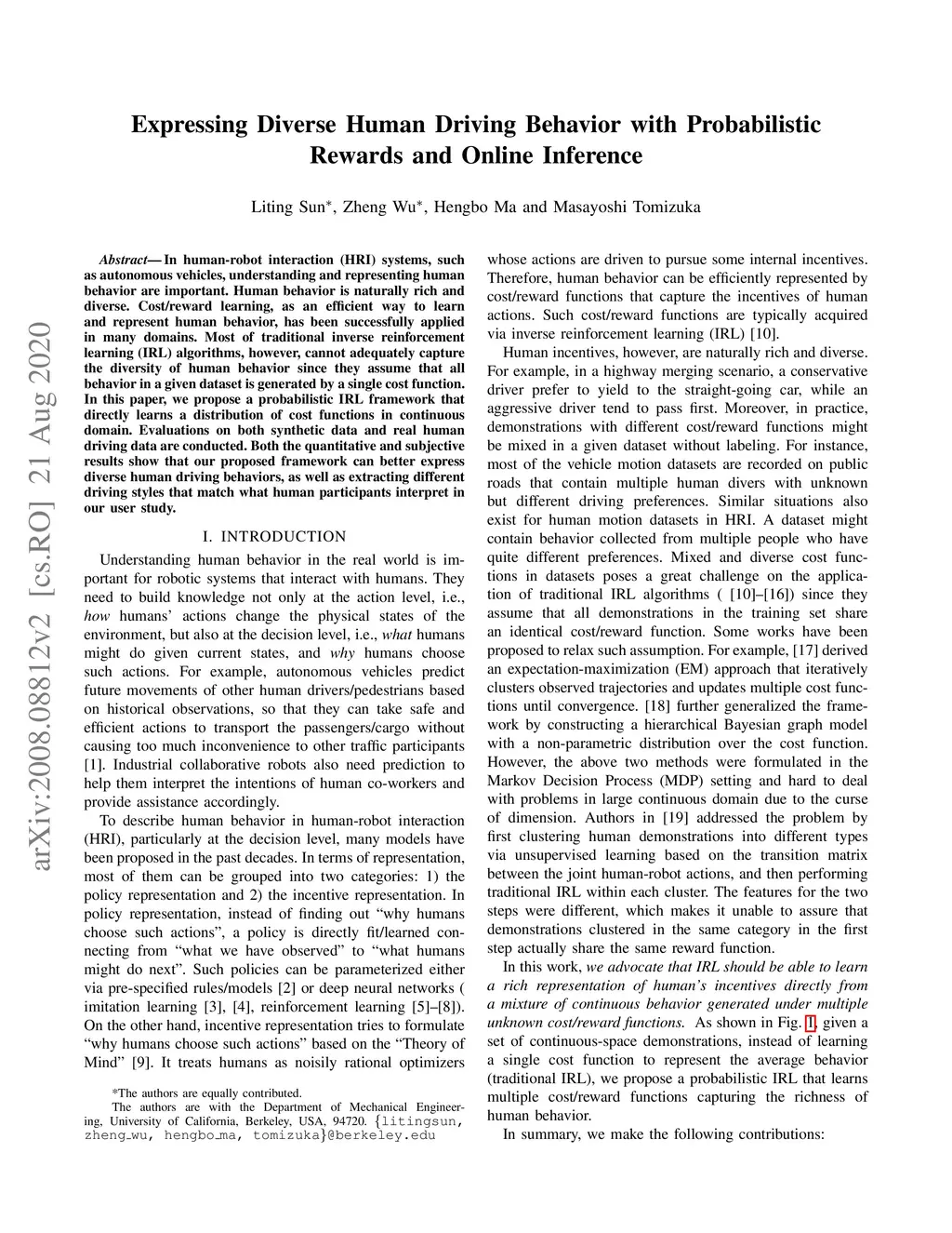Expressing Diverse Human Driving Behavior with Probabilistic Rewards and