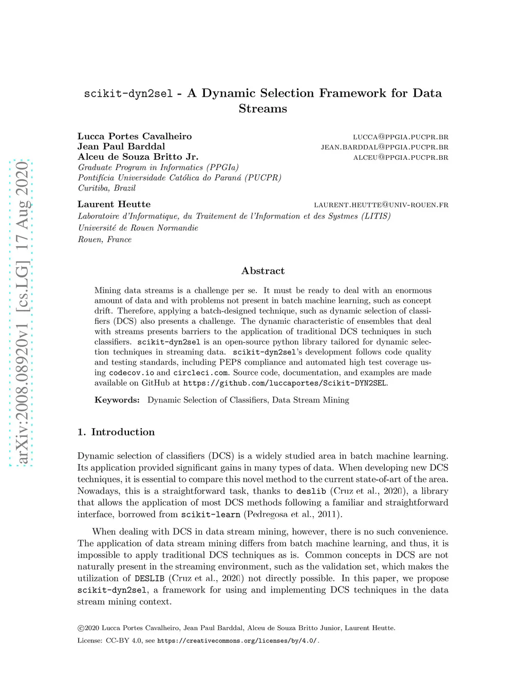 scikit-dyn2sel -- A Dynamic Selection Framework for Data Streams